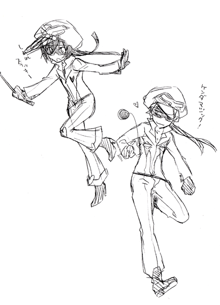 そう何故か機動戦艦ナデシコのユリカの格好をしている主人公がおきぬけに頭に浮かんで、じゃあルリルリは頭白いから明彦か…?と…で、そんな絵を描いてしまいました。