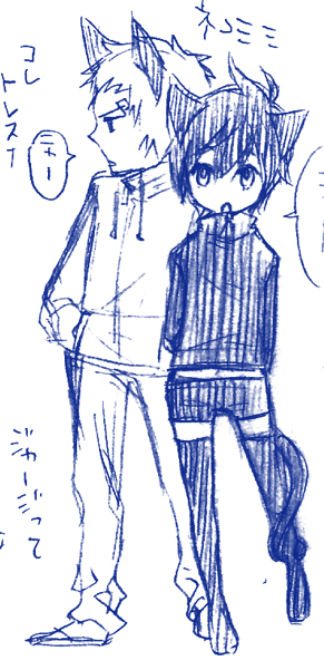 今日のイラストはににゃんこです。なんか猫耳が私の中で今ブームです。後ジャージもブームです。
